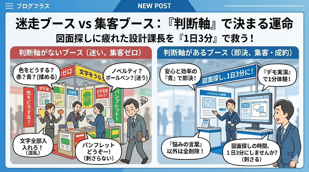 次回出展の際は、デザイン会社に図面を発注する前に、まずは社内で「我々の今回の展示会を貫く、一本の判断軸は何か?」を徹底的に議論してみてください。